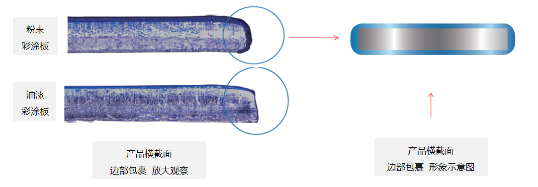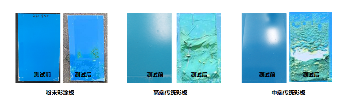 相对于传统油漆彩涂板,粉末彩涂板性能得到进一步提升,涂层致密性好、耐腐蚀性强、耐候性佳,适用范围更加宽广。